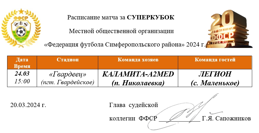 16 сентября 2024 года состоялось принятие решений контрольно-дисциплинарным комитетом по факту неявки на матч 12 тура Открытого Чемпионата Симферопольского района по футболу среди мужских команд 2024 года.